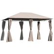 Tonnelle barnum pavillon de jardin style colonial double toit toiles latérales amovibles taupe