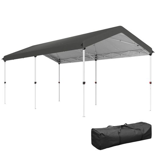 Tonnelle barnum pliable pop up 3 x 6 m - hauteur réglable - sac transport toile haute densité UPF50+ gris foncé
