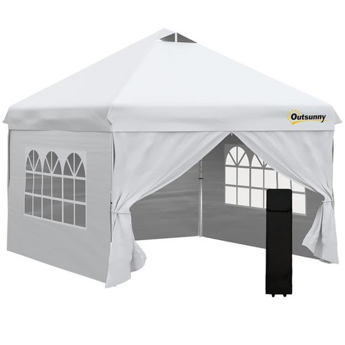 Tonnelle barnum pliant pop-up 3L x 3l x 2,84H m 4 parois latérales amovibles 2 fenêtres + sac de transport métal Oxford blanc