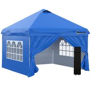 Tonnelle barnum pliant pop-up 3L x 3l x 2,84H m 4 parois latérales amovibles 2 fenêtres + sac de transport métal Oxford bleu
