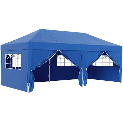 Tonnelle barnum pliant pop-up 5,9L x 2,95l x 2,85H m 6 parois latérales amovibles 4 fenêtres sac de transport bleu