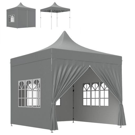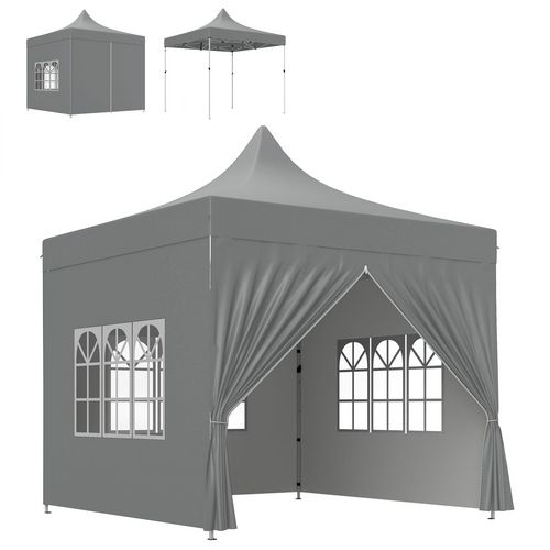 Tonnelle barnum pop-up 3 x 3 m 4 parois latérales amovibles 3 fenêtres hauteur réglable sac transport gris