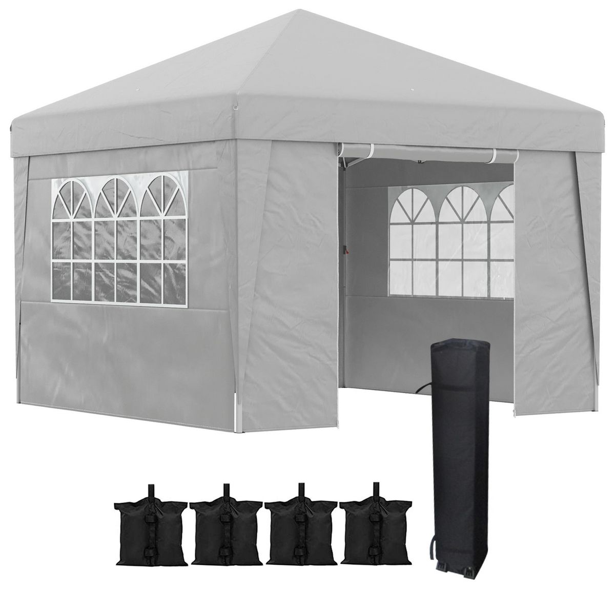 Tonnelle barnum pop-up pliant 2,98L x 2,98l x 2,75H m sacs de lestage et transport inclus gris