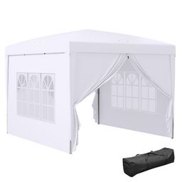 Tonnelle barnum pop-up pliant dim. 3L x 3l x 2,58H m 2 fenêtres sac transport acier Oxford blanc