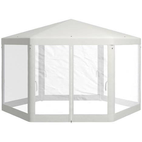 Tonnelle barnum tente de réception hexagonale 10 m² style cosy métal polyester imperméabilisé surface env. 10 m² crème