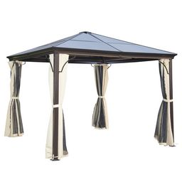 Tonnelle pavillon de jardin imperméable 4 parois latérales anti-UV 4 moustiquaires panneaux polycarbonate alu 3L x 3l x 2,6H m chocolat beige