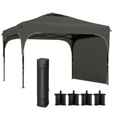 Tonnelle pop-up barnum pliant 3 x 3 x 2,65 m - paroi latérale amovible, sac transport, sacs à lester - acier toile gris