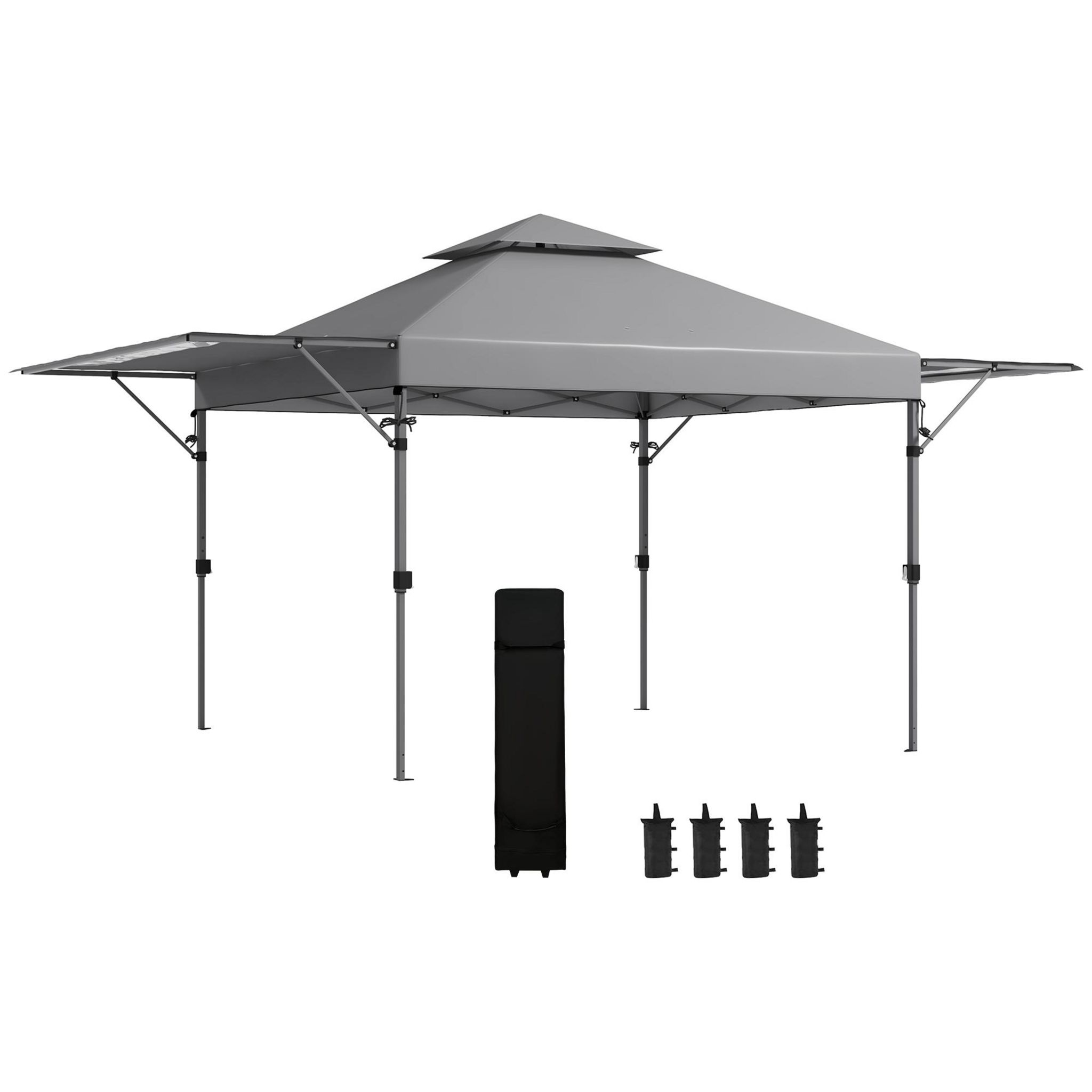 - Tonnelle pliante à double toit et double auvent sur les côtés avec fonction de ventilation en cas de forte chaleur