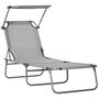 Transat bain de soleil pliable grand confort dossier et pare-soleil réglable multi-positions gris clair