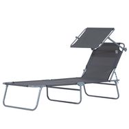 Transat bain de soleil pliable grand confort dossier et pare-soleil réglable multi-positions gris