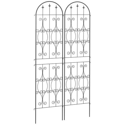 Transformez votre jardin avec ce lot de deux supports pour plantes grimpantes Outsunny. Deux treillis avec motifs de volutes enchanteurs offrent espace pour plantes grimpantes et intimité. En métal résistant et revêtement en poudre, ils garantissent durabilité et installation facile. Idéaux pour jar