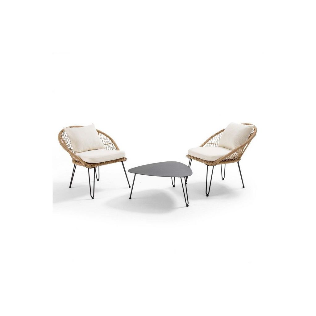 1 table basse en aluminium + 2 fauteuils imitation rotin