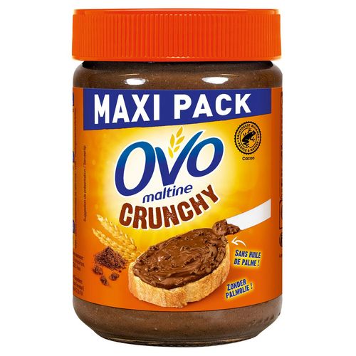 Variez les plaisirs et faites croustiller vos papilles, avec Ovomaltine Crunchy! Composée à 33% d’Ovomaltine (contenant 51% de malt d’orge), cette pâte à tartiner gourmande et forte en goût mêle avec délice fondant et craquant. Unique, avec ses savoureuses pépites d’Ovomaltine croustillantes fondues dans une pâte chocolatée onctueuse, Ovomaltine Crunchy surprend dès la première bouchée.