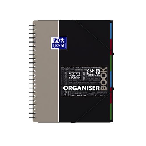 Cahier à spirale Organiser Book 24x32cm - 160 pages - Ligne - gris