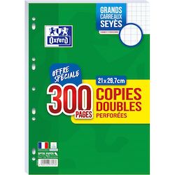 Copies doubles Oxford perforées de 300 pages avec une réglure Seyès. Parfait pour la rentrée des classes ou pour un approvisionnement de bureau. OXFORD, c'est aussi l'histoire d'un papier que l'encre ne traverse pas, d'une blancheur parfaite et au toucher extra-lisse. Autant d'éléments obtenus grâce