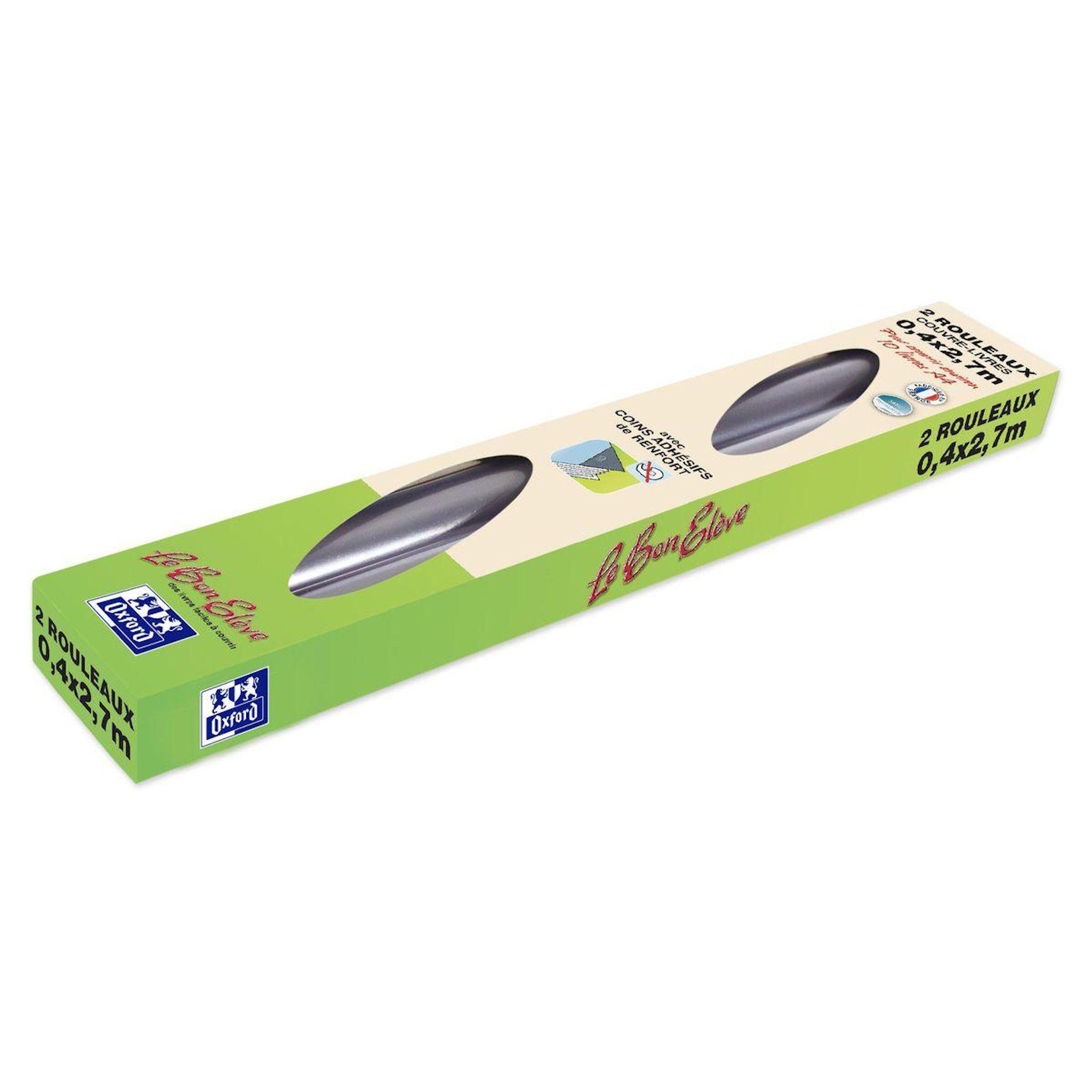 Ce lot de 2 rouleaux couvre-livre 0,4x2,7m LE BON ELEVE PVC transparent est parfait pour protèger vos cahiers toute l'année scolaire.