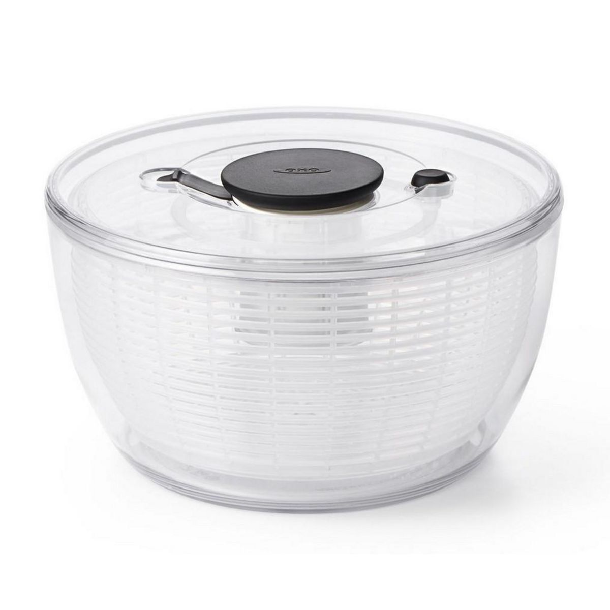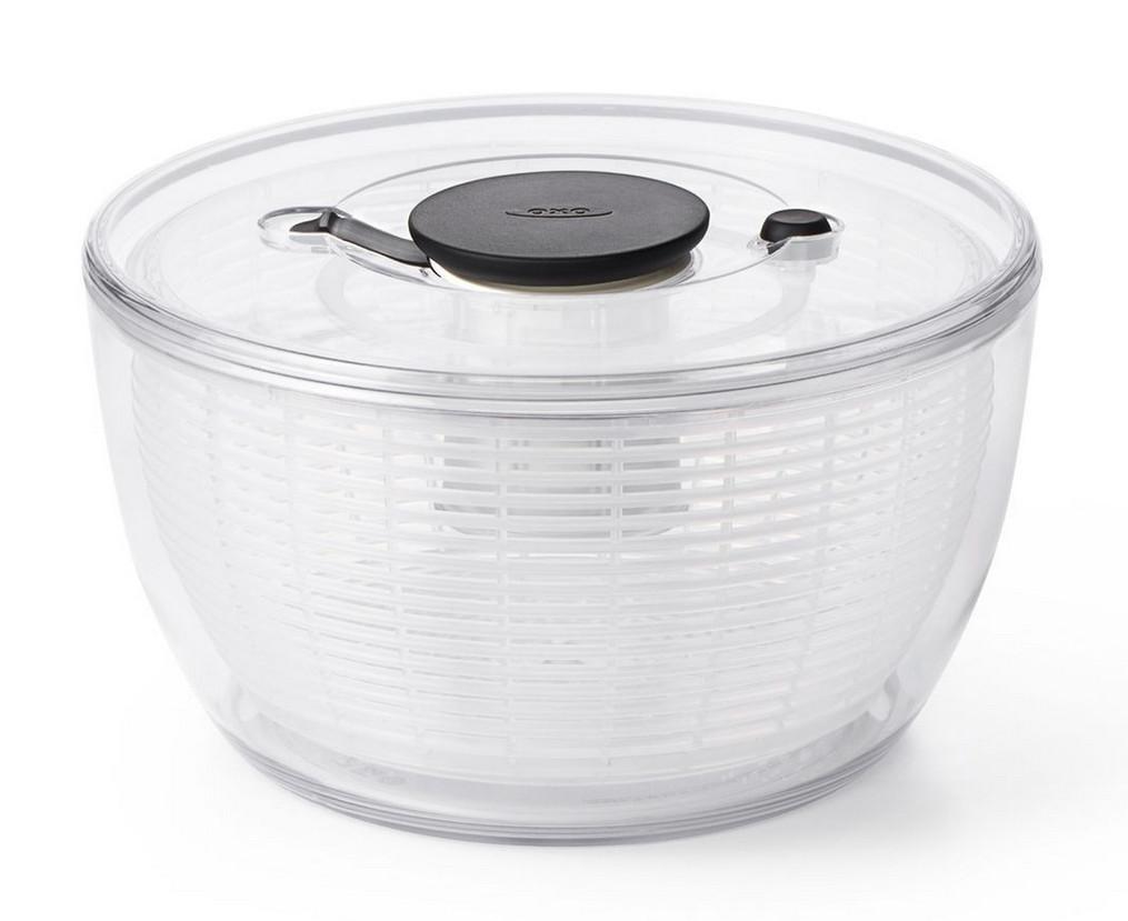 Oxo 1351580 Essoreuse à salade Good Grips Oxo 1351580, rapide et pratique : pour essorer toutes vos salades en un tour de main !Une simple pression sur le large bouton poussoir permet de lancer la rotation du panier et d'essorer la salade.- Le système unique et innovant d'essorage à piston offre un essorage de qualité- Elle possède un frein pour cesser la rotation- Le bouton de pression est clipsable pour faciliter le rangement- Elle possède un fond anti-dérapant pour une meilleure stabilité lors de son utilisation.- Le panier peut servir de passoire et bol peut faire office de saladier.- Afin de faciliter le nettoyage, elle est démontable facilement et est compatible lave-vaisselle.