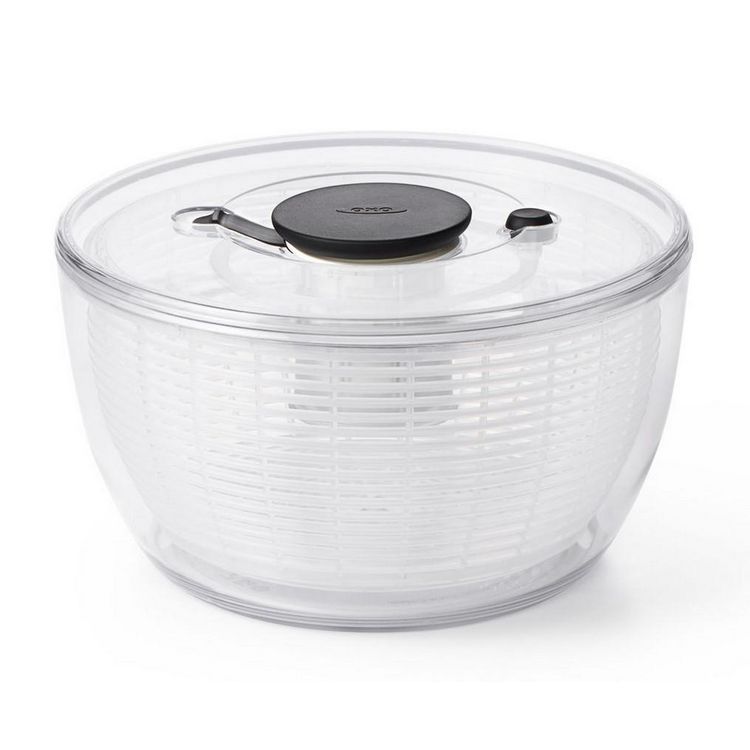 Oxo 1351580 Essoreuse à salade Good Grips Oxo 1351580, rapide et pratique : pour essorer toutes vos salades en un tour de main !Une simple pression sur le large bouton poussoir permet de lancer la rotation du panier et d'essorer la salade.- Le système unique et innovant d'essorage à piston offre un