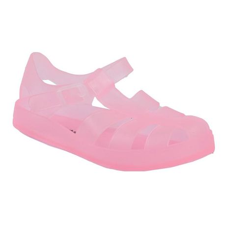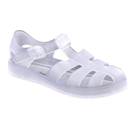 - Ces sandales de plage se caractérisent par leur semelle à picots, leurs brides et leur forme arrondie