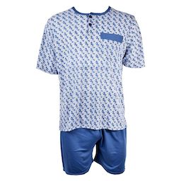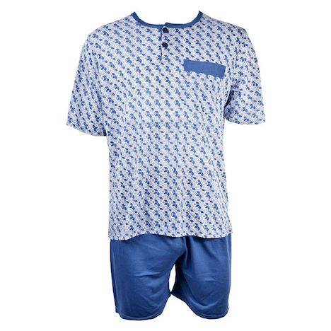 Ensemble pyjama très confortable et simple à enfiler Ultra confort Fantaisie - Ensemble pyjacourt Homme Toucher Doux- Col Boutonné et poche ventrale- Matière très confortable alliant parfait visuel des dessins, qualité et fantaisie.- Pantalon Short à taille élastique Couleurs :Marine , Gris, BleuTai