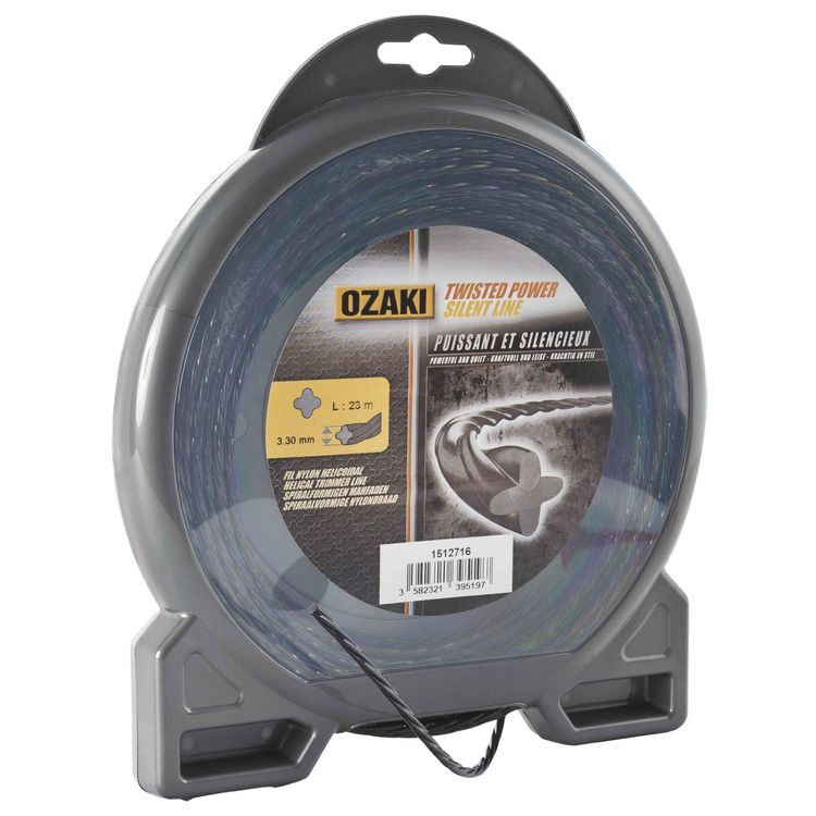 Description détaillée du produit Produit: Bobine de fil nylon hélicoïdal Marque: OZAKI Utilisation: Fil de rechange pour débroussailleuse ou rotofil Caractéristiques: Puissant et silencieux, excellente résistance à l'abrasion Dimensions: Longueur de 23 mètres et diamètre de 3,3 mm Particularité: Pro