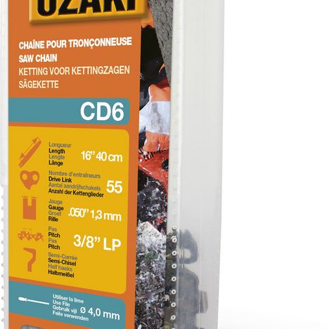 Chaîne de tronçonneuse OZAKI sous coque semi carrée: .3/8"LP .050 (1,3mm) 55 entraîneurs ( E55 ).