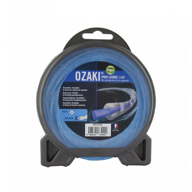 Coque fil nylon OZAKI PRO-CORE LINE. Co-extrudé âme absorbante (flexibilité) et enveloppe haute resistance (longévité) à forme helicoidale (réduction du bruit) - Longueur: 15 m, Ø: 2,40mm.Matière principale: NylonDiamètre du fil (en mm): 2.4Longueur du rouleau (en m): 15Type de recharge: ManuelDesti