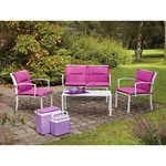 - Salon de jardin composé d'une table basse, d'un canapé deux places et de deux fauteuils.