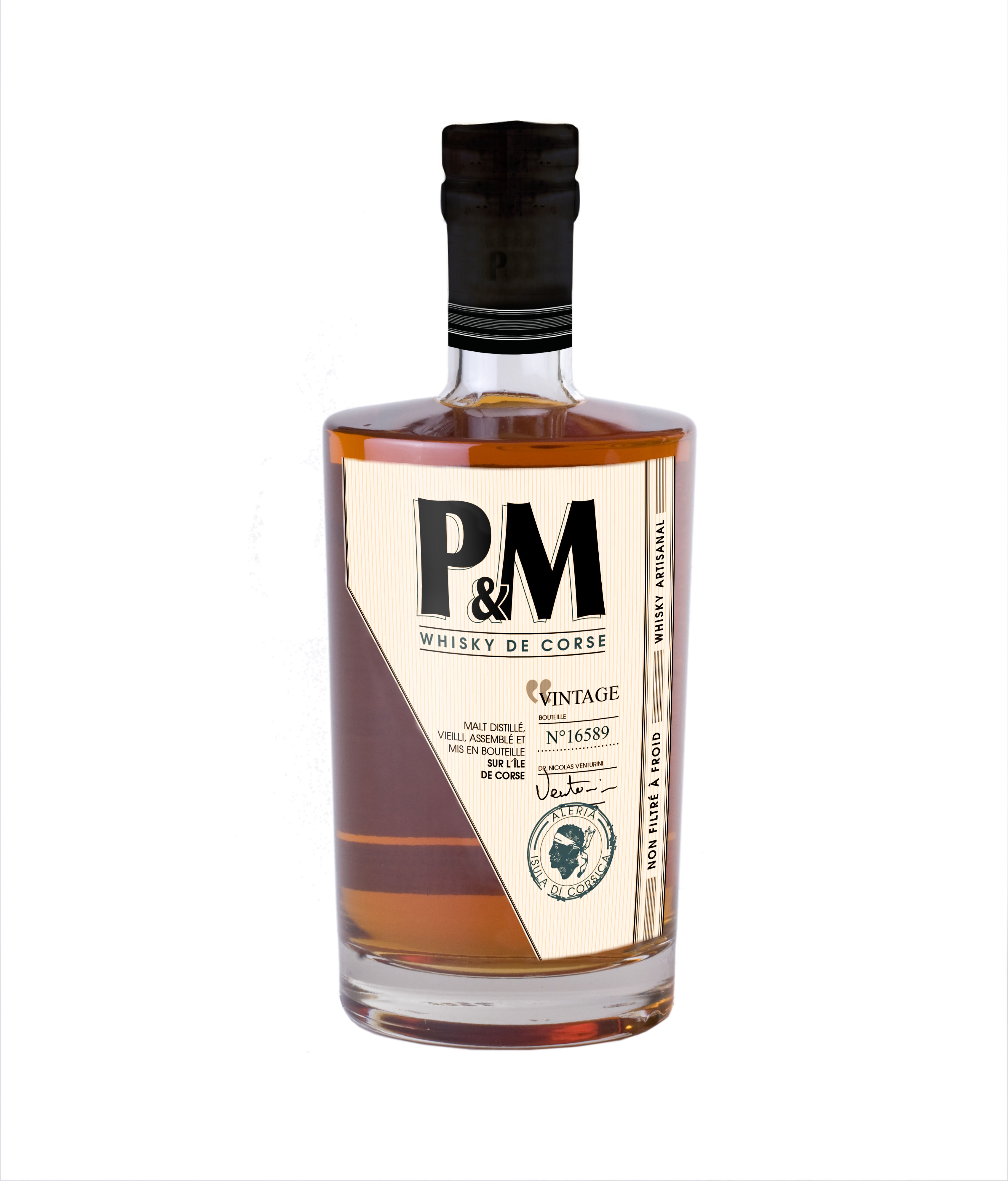 Produit en Corse, il est le fruit de l'assemblage de plusieurs whiskies P&M agés jusqu'à 14 ans.