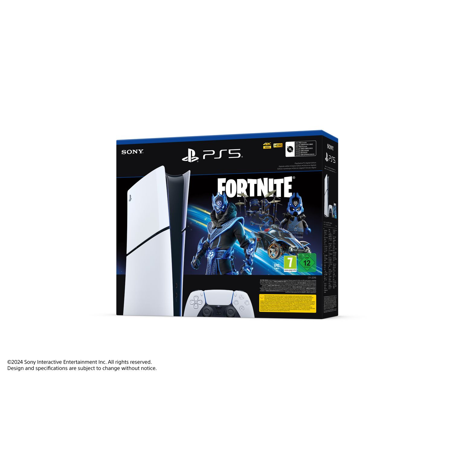 • Le pack comprend une console PS5, 8 objets cosmétiques en jeu (d'une valeur d'environ 5 000 V-Bucks) et 1 000 V-Bucks à utiliser dans Fortnite.