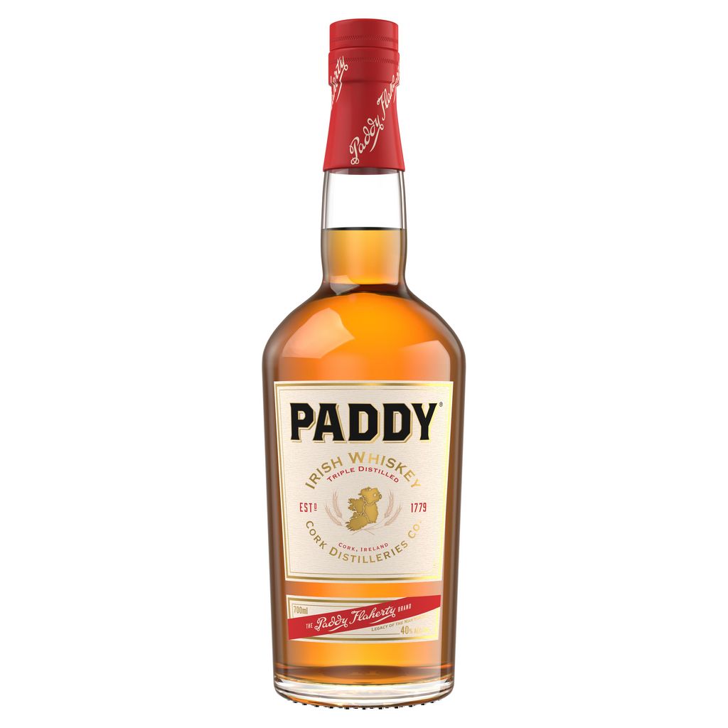 PADDY est un Irish Whiskey qui bénéficie d'une triple distillation et vieillit 3 ans en fûts de chêne. Elaboré dans le comté de Cork depuis 1779, Il est le fruit d'un assemblage de 3 whiskeys : le Pure Pot Still whiskey, le whiskey de grains et le whiskey de malts.