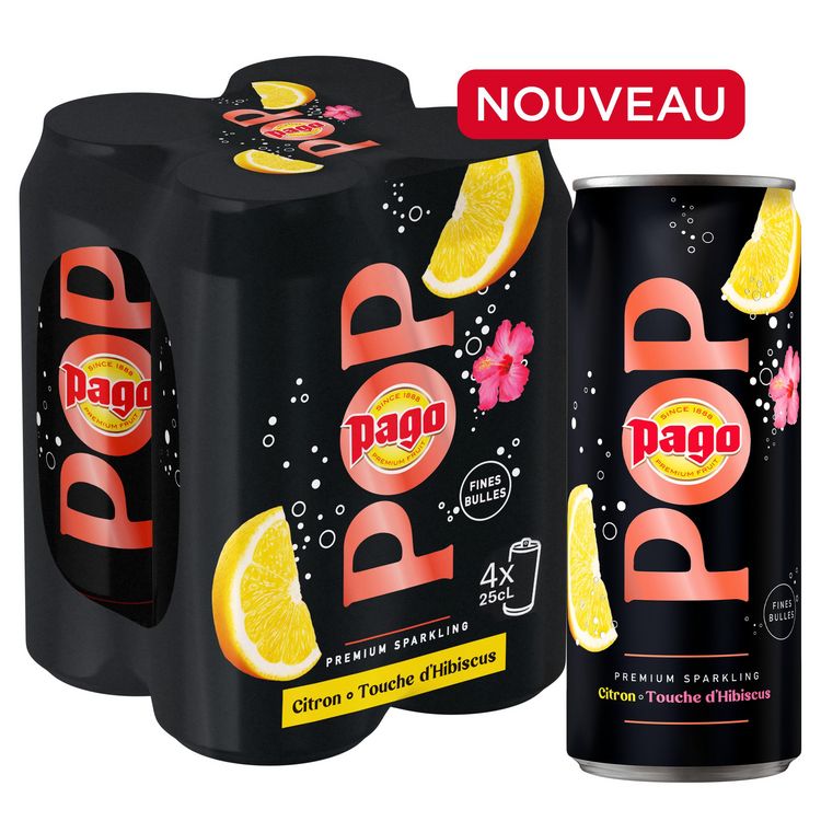 Découvrez une expérience sensorielle inédite, Pago Pop, une boisson pétillante délicieusement fruitée, sublimée par une note originale ; Ici savourez l'acidité du citron sublimée d'une touche de fleur d'hibiscus.