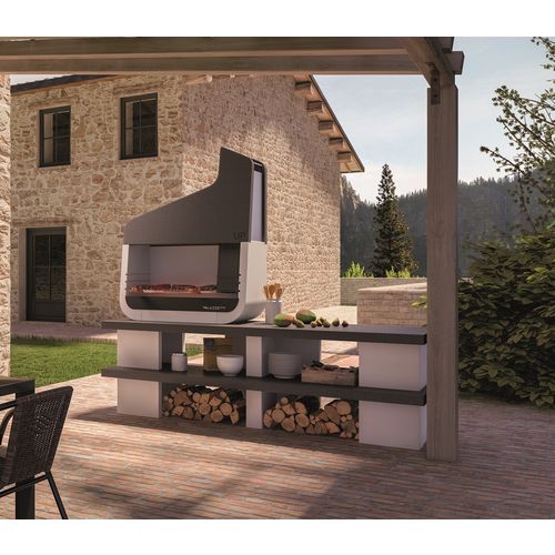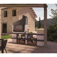 Le barbecue en pierre UP est conçu en béton et matériaux réfractaires pour plus de robustesse. Ce barbecue en pierre UP est équipé d'une hotte pour l'évacuation des fumées et d'un plan de travail en marmotech teinté dans la masse. Ce barbecue à pierre est livré brute, il faudra penser à la protéger via une couche hydrofuge et le crépir. Le barbecue en pierre UP est équipé d'une très grande grille de cuisson en acier inox de 100x40 cm avec poignées en bois pour faciliter la cuisson. Livrée avec un récupérateur de graisse, une protection en métal contre la chute des braises et un grand plan de travail latérale. Compatible au bois ou au charbon de bois.