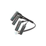 | Divers | Une boîte comprend : 4 piles AA d'une capacité de 1500 mAh chacune, 1 câble de chargement avec quatre têtes micro USB et 1 boite de rangement pour voyage. | |