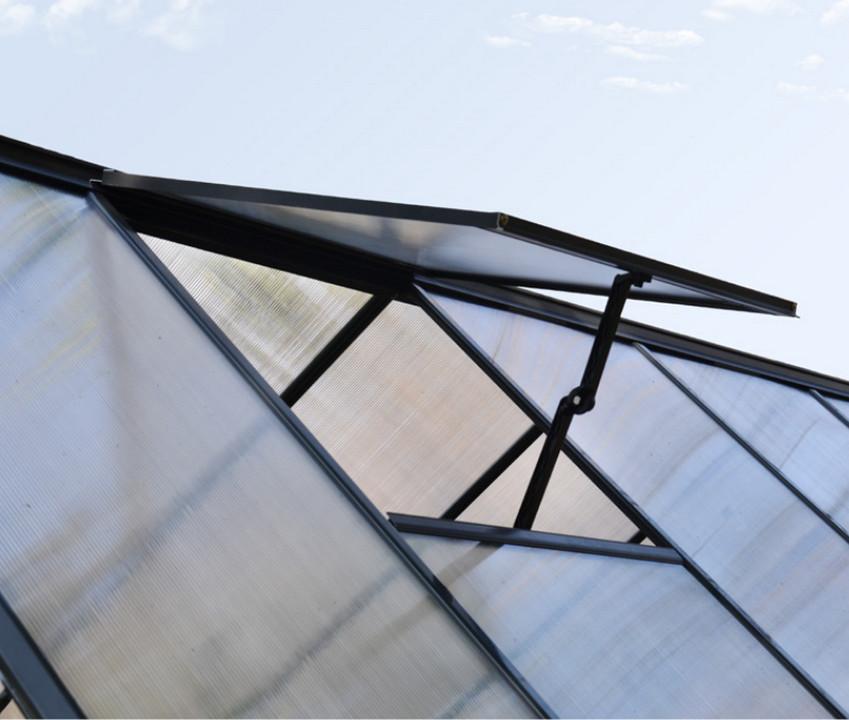 Peut être équipé de l?ouvre-porte automatique Palram pour un débit d?air optimal.