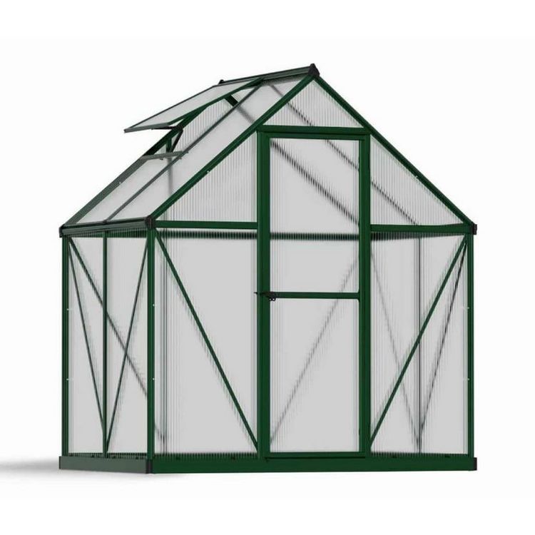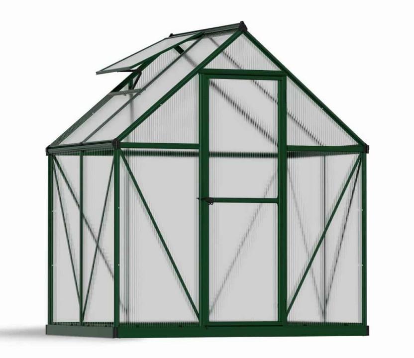 Palram 701637 Serre de jardin Mythos Palram 701637 en polycarbonate hautement résistante, transparente et sûre. Construit avec un vitrage à double paroi diffusant la lumière pour une lumière douce et des températures de niveau. Fournit jusqu'à 100% de protection contre les rayons nocifs du soleil (UV). Parois en plastique polycarbonate résilient à vie, ne pas fracturer, jaunir ou opacifier avec le temps. Structure en aluminium robuste et sans rouille. Design épuré et fonctionnel. Serre de bricolage, sans entretien - construite pour durer grâce à des matériaux extrêmement durables. Protège vos plantes des éléments afin que vous puissiez profiter d'une période de croissance prolongée. Les serres sont disponibles en différentes tailles et couleurs.