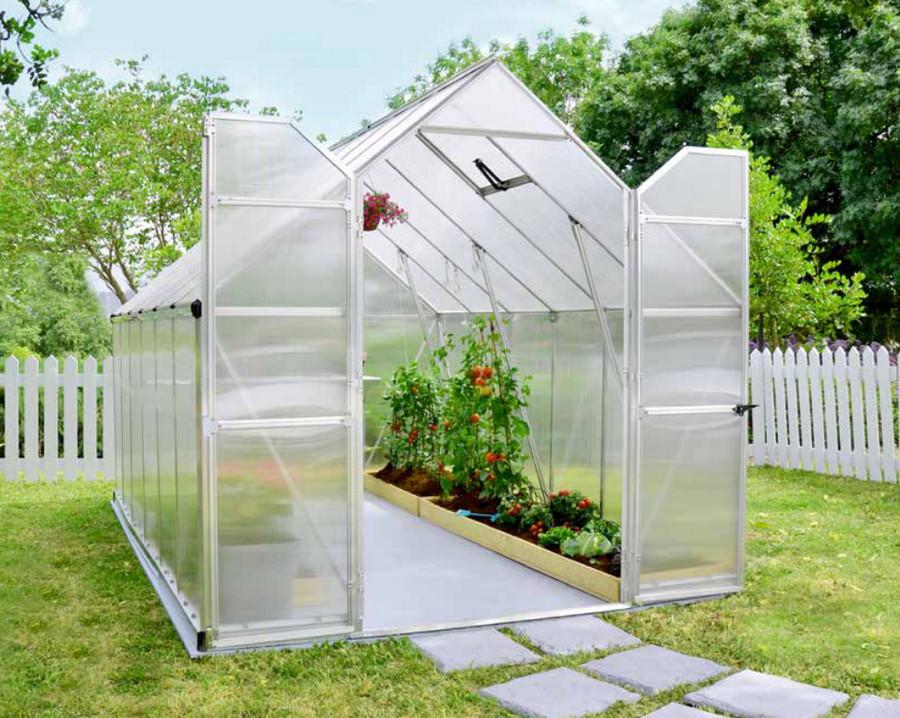 Palram 701944 La serre de jardin Essence Palram 701944 comporte deux fenêtres d?aération pour une meilleure ventilation. Le seuil bas et la double porte large permettent un accès facile. Le cadre en aluminium renforcé, la base en acier galvanisé à haute résistance et les panneaux en polycarbonate à