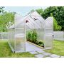 Palram 701944 La serre de jardin Essence Palram 701944 comporte deux fenêtres d?aération pour une meilleure ventilation. Le seuil bas et la double porte large permettent un accès facile. Le cadre en aluminium renforcé, la base en acier galvanisé à haute résistance et les panneaux en polycarbonate à double paroi, rendent la serre Essence très robuste, conçue pour résister aux conditions climatiques les plus difficiles. Robuste et moderne, l?Essence offre des années de plaisir de jardinage.