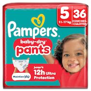 Lorsque votre bébé commence à bouger de plus en plus, il vous faut des couches-culottes qui suivent tous ses mouvements avec un maintien qui le protège contre les fuites. Grâce à leur système révolutionnaire Stop & Protect, nos couches-culottes Pampers Baby-Dry Pants offrent une protection 360° contre les fuites ! Le système Stop & Protect des couches-culottes Baby-Dry Pants comprend : des barrières anti-fuites au niveau des jambes, une poche pour capturer les fuites à l'arrière, une ceinture ultra-extensible 360° qui épouse la morphologie de votre bébé, et un cœur super absorbant offrant jusqu'à 12 heures de protection. Comme toutes nos couches-culottes, Baby-Dry Pants assure une facilité d'utilisation même lorsque votre bébé gigote : faciles à enfiler en un seul geste, faciles à retirer en déchirant les côtés, et faciles à jeter en les enroulant grâce à la bande adhésive. Comme pour vous, chez Pampers la sécurité de votre bébé est une priorité : les couches-culottes Baby-Dry Pants sont approuvées dermatologiquement et contiennent 0% d'allergènes de parfum listés par l'UE (comme règlementé par la réglementation cosmétique de l'UE N° 1223/2009). Elles sont approuvées par les dermatologues de la Skin Health Alliance et sont testées et certifiées Standard 100 par OEKO-TEX. Vous souhaitez en savoir plus sur les composants utilisés par Pampers ? Visitez notre site internet pampers.fr.