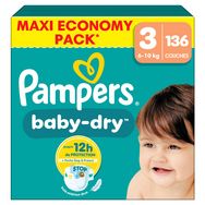 Découvrez les couches Pampers Baby-Dry, spécialement conçues pour suivre les mouvements de votre bébé, pour une nuit confortable et jusqu'à 100% sans fuites. Grâce à leur absorption améliorée, ces couches absorbent et capturent rapidement l'humidité, gardant votre bébé bien au sec pendant de longues périodes. De plus, la poche Stop & Protect aide à prévenir les fuites à l'arrière de la couche. Fabriquées avec des matériaux de haute qualité, nos couches Baby-Dry enveloppent la peau de votre bébé en douceur. Chez Pampers, la sécurité de votre bébé est notre priorité absolue. C'est pourquoi nos couches Baby-Dry sont soumises à des tests dermatologiques rigoureux et ne contiennent aucun des allergènes de parfum listés par l'UE, comme règlementé par la réglementation cosmétique n° 1223/2009 de l'UE. Nous détenons également la certification Standard 100 par OEKO-TEX, vous garantissant leur qualité et leur sécurité. Tout cela pour dire adieu aux fuites et bonjour à des nuits de sommeil confortables. Vous souhaitez en savoir plus sur la composition de nos produits ? Visitez pampers.fr