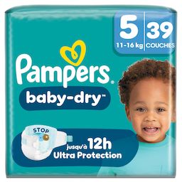 Gardez votre bébé au sec et protégé toute la nuit avec les couches Pampers Baby-Dry. Conçues avec notre cœur InstantAbsorb unique, elles absorbent rapidement l'humidité pour offrir une nuit confortable et jusqu'à 100% sans fuites. La poche Stop & Protect aide à prévenir les fuites à l'arrière de la couche, tandis que les matériaux doux ComfortTouch enveloppent la peau de votre bébé en douceur. Les couches Pampers Baby-Dry offrent une protection fiable grâce aux doubles barrières anti-fuites pour une protection supplémentaire et à leur indicateur d'urine qui vous informe quand il est temps de changer la couche. Testées dermatologiquement, sans allergènes de parfum listés par l'UE et certifiées Standard 100 par OEKO-TEX, elles sont sûres pour la peau de votre bébé.