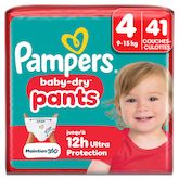 Lorsque votre bébé commence à bouger de plus en plus, il vous faut des couches-culottes qui suivent tous ses mouvements avec un maintien qui le protège contre les fuites. Grâce à leur système révolutionnaire Stop & Protect, nos couches-culottes Pampers Baby-Dry Pants offrent une protection 360° contre les fuites ! Le système Stop & Protect des couches-culottes Baby-Dry Pants comprend : des barrières anti-fuites au niveau des jambes, une poche pour capturer les fuites à l'arrière, une ceinture ultra-extensible 360° qui épouse la morphologie de votre bébé, et un cœur super absorbant offrant jusqu'à 12 heures de protection. Comme toutes nos couches-culottes, Baby-Dry Pants assure une facilité d'utilisation même lorsque votre bébé gigote : faciles à enfiler en un seul geste, faciles à retirer en déchirant les côtés, et faciles à jeter en les enroulant grâce à la bande adhésive. Comme pour vous, chez Pampers la sécurité de votre bébé est une priorité : les couches-culottes Baby-Dry Pants sont approuvées dermatologiquement et contiennent 0% d'allergènes de parfum listés par l'UE (comme règlementé par la réglementation cosmétique de l'UE N° 1223/2009). Elles sont approuvées par les dermatologues de la Skin Health Alliance et sont testées et certifiées Standard 100 par OEKO-TEX. Vous souhaitez en savoir plus sur les composants utilisés par Pampers ? Visitez notre site internet pampers.fr.