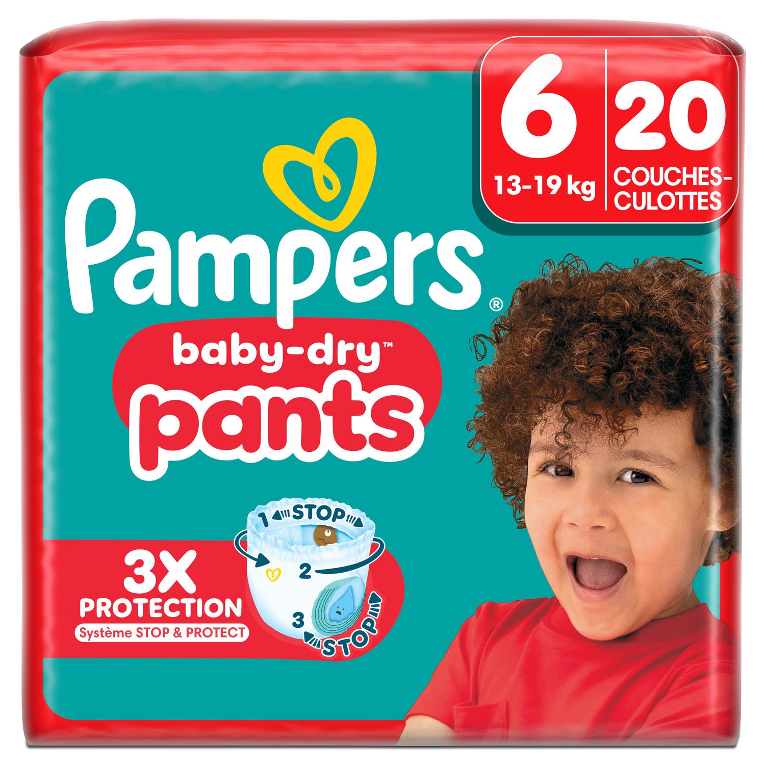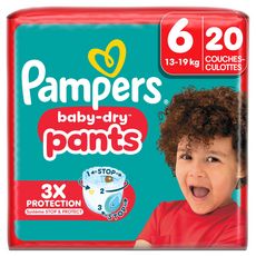 Lorsque votre bébé commence à bouger de plus en plus, il vous faut des couches-culottes qui suivent tous ses mouvements. Grâce à leur système Stop & Protect révolutionnaire, les couches-culottes Pampers Baby-Dry Pants offrent une protection intégrale supérieure contre les fuites, quelle que soit la position dans laquelle votre bout de chou se trouve, jour et nuit. Le système Stop & Protect de Pampers Baby-Dry Pants comprend : des barrières anti-fuites 2 x plus larges* qui aident à éviter les fuites au niveau des jambes, une poche qui aide à capturer les fuites à l'arrière, une ceinture flexible 360°, qui épouse les contours du corps de votre tout-petit quand il bouge et un cœur super absorbant offrant jusqu'à 12 heures de protection. Comme toutes nos couches-culottes, les couches-culottes Pampers Baby-Dry Pants sont faciles à changer même lorsque votre bébé gigote : faciles à enfiler en un seul geste, faciles à retirer en déchirant les côtés, et faciles à jeter en les enroulant grâce à la bande adhésive. Comme pour vous, la sécurité de votre bébé est notre priorité : Les couches-culottes Pampers Baby-Dry Pants sont approuvées dermatologiquement et contiennent 0% d'allergènes de parfum listés par l'UE (comme réglementé par la réglementation cosmétique de l'UE N°1223/2009). Elles sont approuvées par les dermatologues de la Skin Health Alliance et testées et certifiées Standard 100 par OEKO-TEX. Vous souhaitez en savoir plus sur la composition de nos produits Pampers ? Visitez pampers.fr. *par rapport à avant.