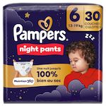 Offrez à votre bébé la meilleure protection Pampers pour la nuit avec nos couches-culottes Pampers Night Pants : grâce à leur cœur absorbant elles sont le produit Pampers le plus absorbant pour une nuit jusqu'à 100% sans fuites ! Elles sont également dotées d'une ceinture 360° qui s'adapte aux mouvements de votre bébé dans la nuit et d'une poche Stop & Protect qui aide à éviter les fuites à l'arrière de la couche-culotte ! Comme toutes nos couches-culottes, Night Pants assure une facilité de change même lorsque votre bébé bouge : faciles à enfiler en un seul geste, faciles à retirer en déchirant les côtés, et faciles à jeter en les enroulant grâce à la bande adhésive. Comme pour vous, chez Pampers la sécurité de votre bébé est une priorité : Night Pants est approuvé dermatologiquement, contient 0% d'allergènes de parfum listés par l'UE (comme règlementé par la réglementation cosmétique de l'UE N° 1223/2009) et est testé et certifié Standard 100 par OEKO-TEX. Vous souhaitez en savoir plus sur la composition ? Visitez notre site internet pampers.fr