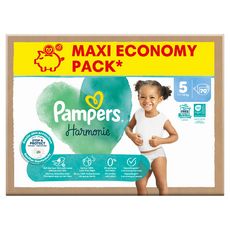 Votre bébé a besoin de choses simples, comme de l'amour et de la douceur. Les couches Pampers Harmonie sont conçues pour protéger leur peau délicate avec uniquement les ingrédients soigneusement sélectionnés dont elle a besoin. Elles sont hypoallergéniques*, ne contiennent pas de parfum ni de lotion, sont approuvées par les dermatologues** de la Skin Health Alliance et certifiées Standard 100 par OEKO-TEX. Elles garantissent une peau protégée et bien au sec jusqu'à 12 h pour rassurer tous les parents de la qualité dont ils ont besoin. Désormais dotée d'une poche Stop & Protect qui aide à capturer les fuites à l'arrière de la couche. Leur cœur absorbant est produit à partir de cellulose issue de forêts durablement gérées et certifiées FSC, et d'autres sources contrôlées. Les couches Pampers Harmonie arborent des motifs trop mignons et sont dotées d'un indicateur d'urine Pampers très pratique : vous et votre bébé allez les adorer. Vous souhaitez en savoir plus sur la composition de nos produits Pampers ? Visitez pampers.fr. *Conçue pour minimiser le risque de réactions allergiques. **La SHA approuve les couches Pampers comme étant sans danger au contact de la peau de bébé. Pour en savoir plus, visitez Pampers.fr