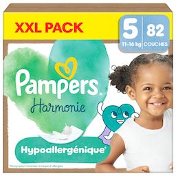 Les couches Harmonie sont conçues pour les peaux les plus sensibles et testées contre les substances nocives selon la norme Standard 100 d'OEKO-TEX. Pour votre tranquillité d'esprit, elles sont hypoallergéniques, testées dermatologiquement et approuvées par des dermatologues de la Skin Health Alliance*. Ce soin doux est associé à une performance fiable, offrant jusqu'à 100% de protection contre les fuites pendant la nuit grâce à une poche Stop & Protect qui aide à capturer les fuites à l'arrière. Les couches Pampers Harmonie ont un voile supérieur doux avec 50% d'ingrédients d'origine végétale et un coeur absorbant fabriqué à partir de cellulose provenant de forêts gérées de manière responsable et certifiées FSC™ ainsi que d'autres sources contrôlées. Avec des motifs adorables et l'indicateur d'urine Pampers pratique : vous et votre bébé allez les adorer ! Vous voulez en savoir plus sur les composants utilisés par Pampers ? Visitez pampers.fr. *Conçue pour minimiser le risque d'allergies. SHA® approuve les couches Pampers® comme étant sûres au contact de la peau de bébé. Pour en savoir plus, rendez-vous sur pampers.fr.