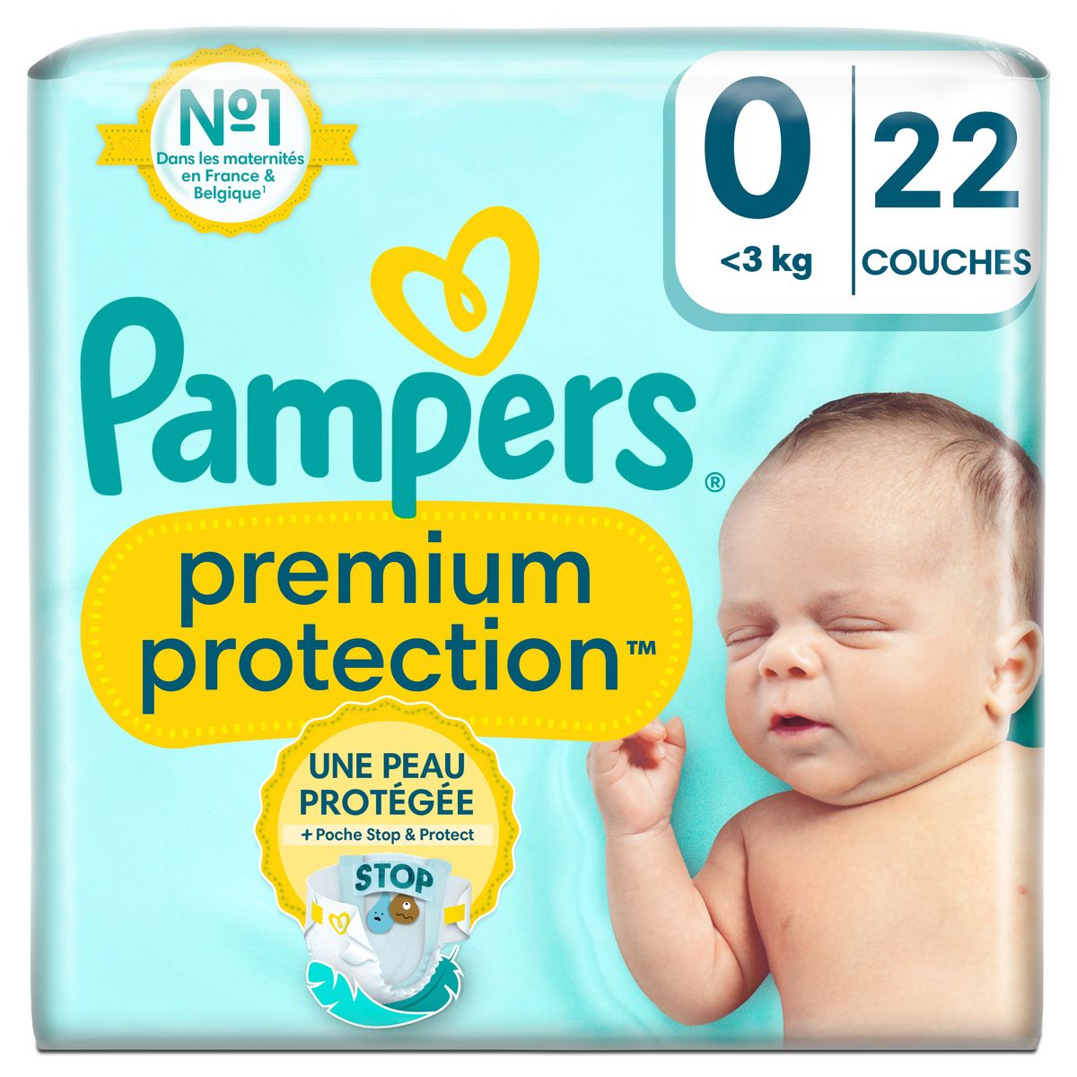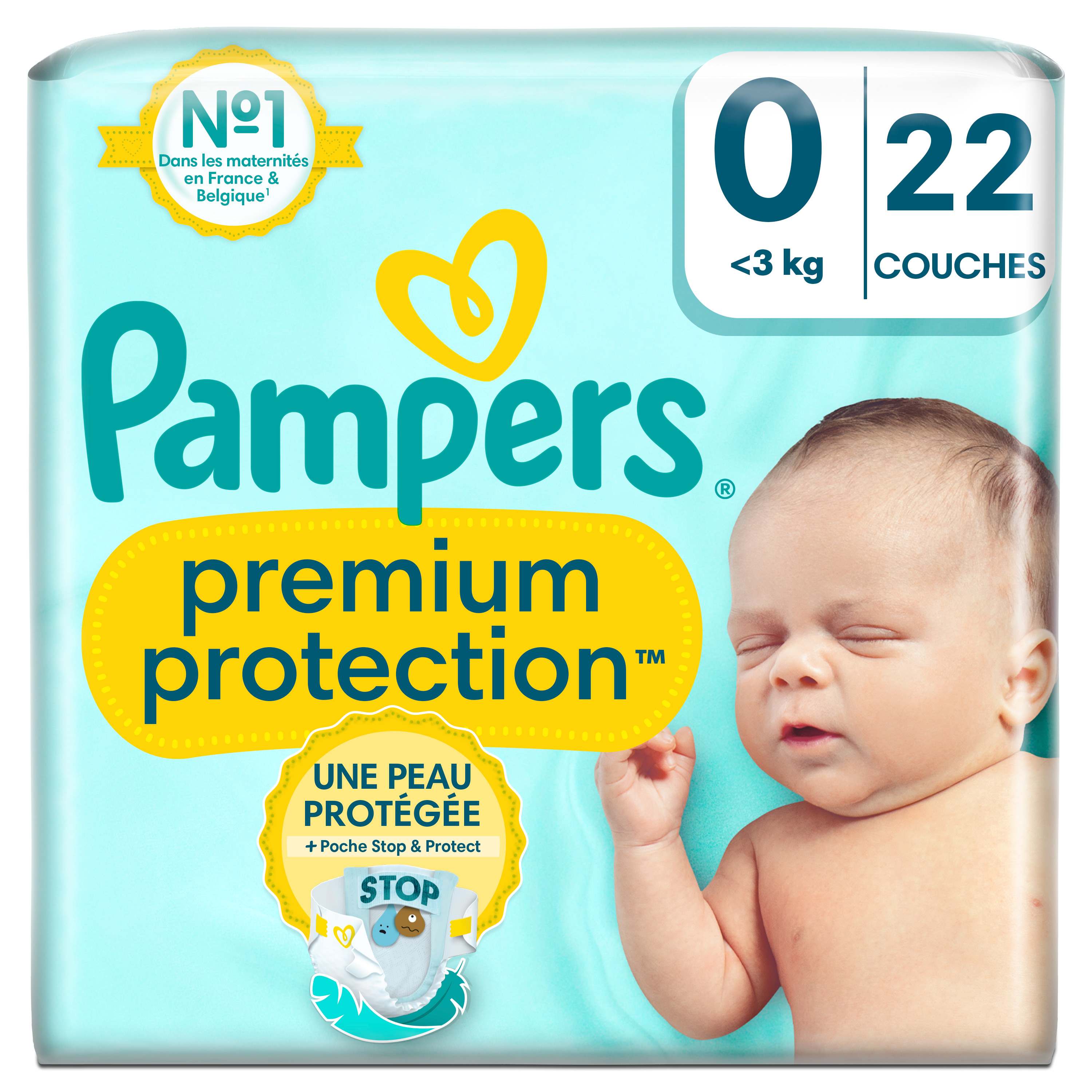 Double protection : pour la peau et contre les fuites. Les couches Pampers N°1 pour le confort et la protection des peaux sensibles - testées et approuvées par des bébés ! Nous avons conçu la couche Pampers N°1 spécialement pour la peau délicate des nouveau-nés. C'est également notre couche N°1 contre les fuites. Les couches Pampers Premium Protection offrent notre meilleure protection, grâce à 1) une absorption instantanée, avec des millions de micro-aérations absorbantes qui éloignent instantanément l'humidité et les selles molles de la peau et les capturent au cœur de la couche. La peau délicate de votre bébé reste bien au sec et protégée. 2) Des matières ultra-douces pour envelopper votre bébé dans un nuage de confort et de protection. Et 3) notre technologie unique Comfort Fit avec un système d'attaches superposables et une découpe spéciale cordon ombilical. Les couches Pampers Premium Protection, le choix N°1 des maternités en France*, sont 100 % sûres pour la peau de votre bébé. Elles sont testées dermatologiquement et ne contiennent aucun des allergènes de parfum listés par l'UE (comme réglementé par la réglementation cosmétique de l'UE N°1223/2009). Pas étonnant que les nouveau-nés approuvent ! *Basé sur les données de distribution au mois de janvier 2023 dans les maternités en France
