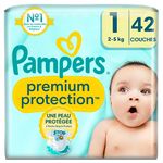Double protection : pour la peau et contre les fuites. Les couches Pampers N°1 pour le confort et la protection des peaux sensibles - testées et approuvées par les bébés ! Nous avons conçu la couche Pampers N°1 spécialement pour la peau délicate des nouveau-nés. C'est également notre couche N°1 contre les fuites. Les couches Pampers Premium Protection offrent notre meilleure protection, grâce à 1) une absorption instantanée, avec des millions de micro-alvéoles absorbantes qui éloignent instantanément l'humidité et les selles molles de la peau et les capturent au cœur de la couche afin de garder la peau délicate de votre bébé bien au sec et protégée. 2) Une poche Stop & Protect unique pour capturer les fuites à l'arrière de la couche. 3) Des matières ultra-douces pour envelopper votre bébé dans un nuage de confort et de protection. Et 4) notre technologie unique Comfort Fit avec un système d'attaches superposables et une découpe spéciale cordon ombilical. Les couches Pampers Premium Protection, le choix N°1 des maternités en France*, sont 100 % sûres pour la peau de votre bébé. Elles sont testées dermatologiquement et ne contiennent aucun des allergènes de parfum listés par l'UE (comme réglementé par la réglementation cosmétique de l'UE N°1223/2009). Pas étonnant que les nouveau-nés approuvent ! *Basé sur les données de distribution sur les tailles 0 & 1 au mois de janvier 2023 dans les maternités en France