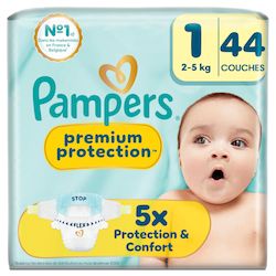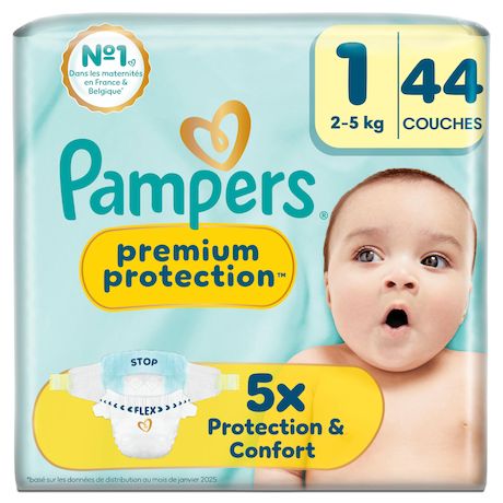 NOTRE MEILLEURE PROTECTION POUR LA PEAU ET CONTRE LES FUITES. Le meilleur confort et protection de Pampers pour les peaux sensibles - testé et approuvé par les bébés ! Nous avons conçu la couche N°1 Pampers spécialement pour la peau délicate des nouveau-nés. C'est également notre N°1 contre les fuites. Les couches Pampers Premium Protection offrent notre meilleure protection grâce à : 1) une ABSORPTION INSTANTANÉE - avec plus de 1000 micro-alvéoles absorbantes qui éloignent instantanément l'humidité et les selles molles de la peau pour la garder bien au sec et protégée. 2) une POCHE STOP & PROTECT pour capturer les fuites à l'arrière de la couche. 3) des MATIÈRES ULTRA-DOUCES pour envelopper votre bébé dans un nuage de confort et de protection. 4) notre MAINTIEN CONFORTABLE avec un système d'attaches superposables. Et 5) Désormais encore plus adapté au ventre grâce à notre CEINTURE FLEX & PROTECT spécialement conçue pour protéger la peau délicate de votre bébé. Les couches Pampers Premium Protection, le choix N° 1 des maternités en France, sont 100 % sûres pour la peau de votre bébé : elles sont testées dermatologiquement, approuvées par les dermatologues de Skin Health Alliance et ne contiennent aucun des allergènes de parfums listés par l'UE (comme réglementé par la réglementation cosmétique de l'UE N°1223/2009). Pas étonnant que les nouveau-nés les approuvent !