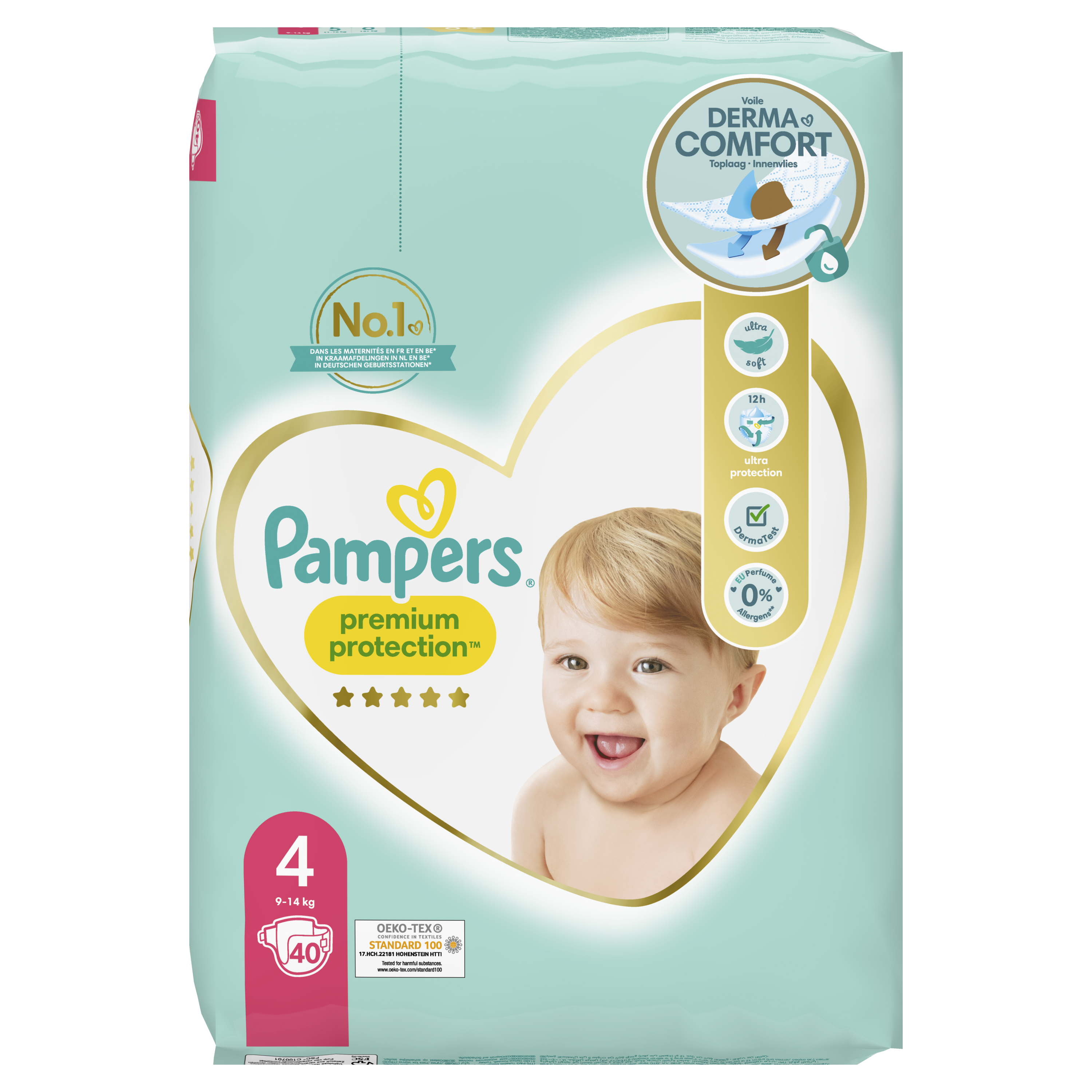 Les couches Pampers Premium Protection sont les n°1 dans les maternités en France* et sont 100% sûres pour la peau de votre bébé : elles sont testées dermatologiquement et ne contiennent aucun des 26 allergènes de parfums listés par l’UE.